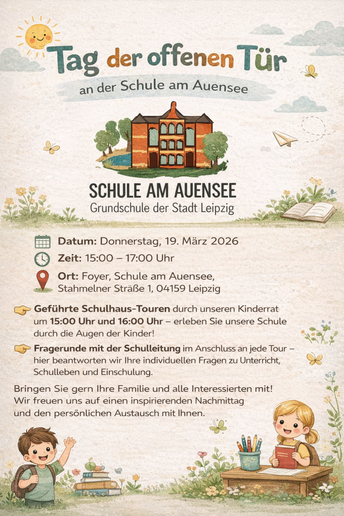 Liebe Eltern, liebe Sorgeberechtigte, die Schule am Auensee lädt Sie herzlich zum Tag der offenen Tür ein. 🗓 Datum:Donnerstag, 19. März…